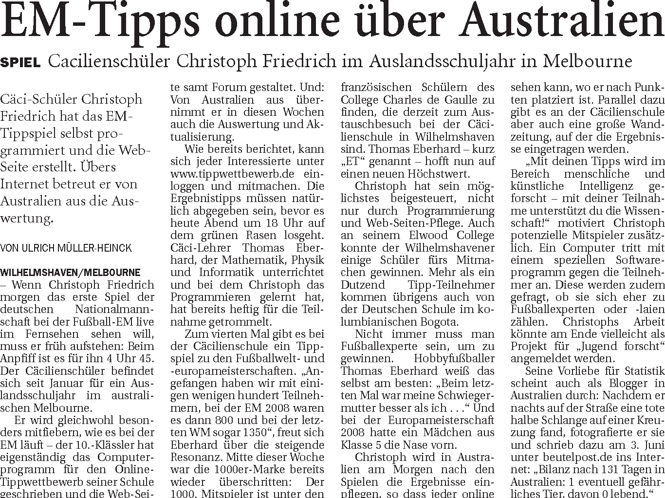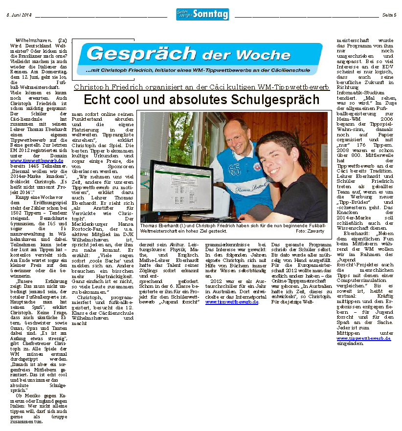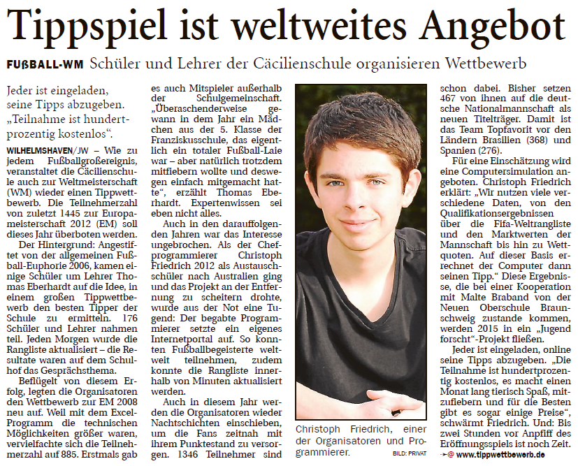 Vor vier Jahren waren wir mit dem Tippwettbewerb sogar mehrmals in der Zeitung!